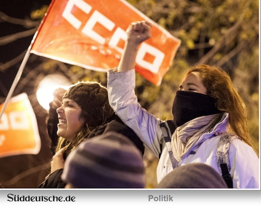 Cosa bien distinta es, por fortuna, el seguimiento que el Süddeutsche Zeitung hace de la huelga general de España. En una galería de 11 imágenes ilustrativas del estado de crisis en el Sur de Europa, el rotativo muniqués incluye cinco imágenes de España: dos jóvenes manifestantes de Comisiones Obreras (erróneamente identificadas como empleadas públicas griegas); la actuación en la madrugada de ayer, de unos piquetes en Mercabarna; la imagen de Ana Pastor, como represaliada por la purga de periodistas críticos en TVE; el anunciado desmantelamiento, 40 años desués, de Garoña, la central nuclear más antigua de España que dejará en la calle a 1.500 familias; y la lucha del mundo de la cultura, severamente castigado por el incremento del IVA al 22 por 100, personalizado en Javier Bardem .