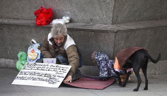 Un indigente mendigando en una calle de Madrid. / SAMUEL SÁNCHEZ