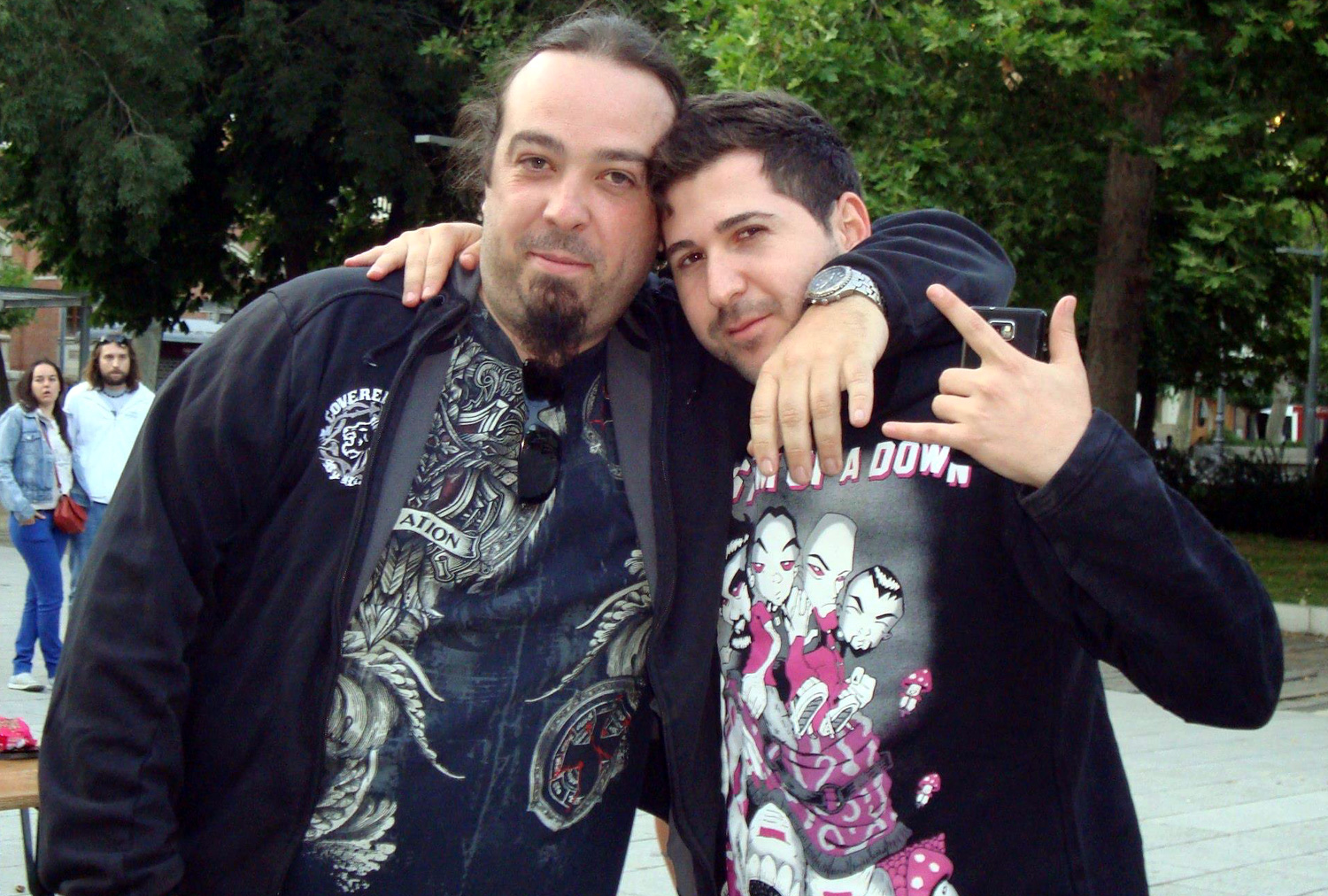 XG: Sí, eso es lo más importante que tenemos en cuenta nosotros; es poder compartir el Evangelio con ellos, darles esa alternativa. Porque, toda esta gente del metal… ellos creen que son rechazados por el sistema, e incluso por el mismo Dios. Entonces adoptan esas formas… (piensan), “Dios me rechaza, la gente que tenga algo que ver con la religión me rechaza… soy rechazado; por lo tanto, yo voy a rechazar…”. Entonces, nosotros abrimos un poco las puertas con respecto a ellos; estamos ahí con ellos, pasamos tiempo con ellos, intentamos poder conectar… Sin ningún tipo de interés, sino de que vean nuestras propias vidas; nuestro testimonio que es lo que ellos quieren ver: cristianos “auténticos”. No quieren que les digan palabras (simplemente), “mira, recibe a Jesús…”. No, quieren ver que ese Jesús vive en ti, y que es real.