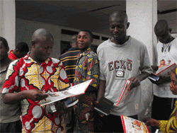 (Congo10/09/2009 ) – La Sociedad Bíblica de Congo (SBC), junto con las ONG del país, está ayudando al gobierno congolés en la tarea de reintegrar a los soldados que lucharon en la guerra civil que desoló el país entre los años 1993 y 2002. En Brazzaville, la capital, viven cerca de 5.000 ex combatientes, hombres y mujeres; algunos de ellos eran demasiado jóvenes cuando lucharon en la guerra. El pasado mes de julio, la SBC estuvo presente, junto con ocho ONG, en una distribución bíblica para algunos de los ex combatientes organizado por el Programa Nacional de Desmovilización, Desarme y Rehabilitación de los Soldados (NPDDR). Entre los materiales que les entregaron había una Biblia en francés básico Parole de Vie, un Nuevo Testamento y un libro ilustrado titulado ¿Qué es la Biblia?.
