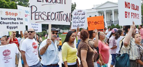 Manifestantes protestan por las persecusiones contra los cristianos en países gobernados por regímenes islámicos