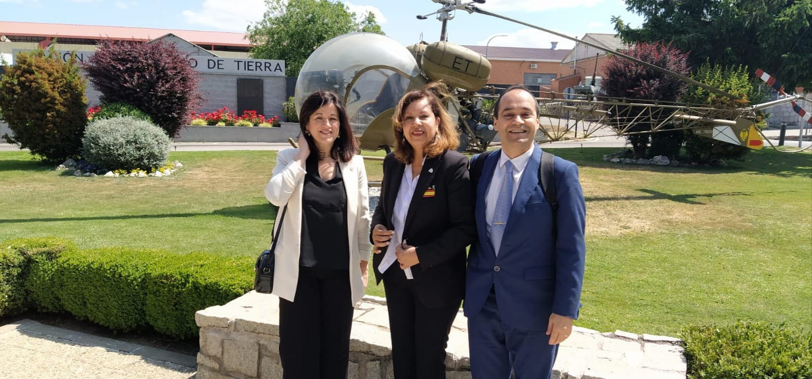 (MADRID, 23/05/2023) El pasado viernes, día 19 de mayo, la secretaria ejecutiva de la Federación de Entidades Religiosas Evangélicas (FEREDE), Carolina Bueno, junto con la directora de la Coordinadora de FFAA, Bertha Pérez, visitó la Base de Helicópteros de Colmenar Viejo (FAMET), para animar a los soldados evangélicos que allí sirven.