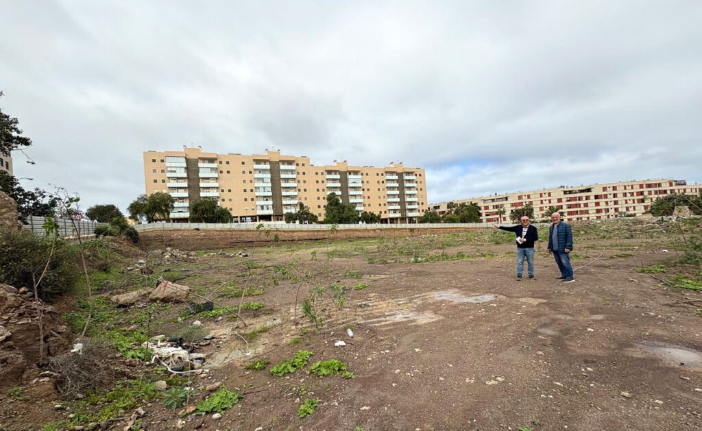 Los pastores Sergio Zubillaga y Jorge Pastor observan el terreno destinado al nuevo colegio