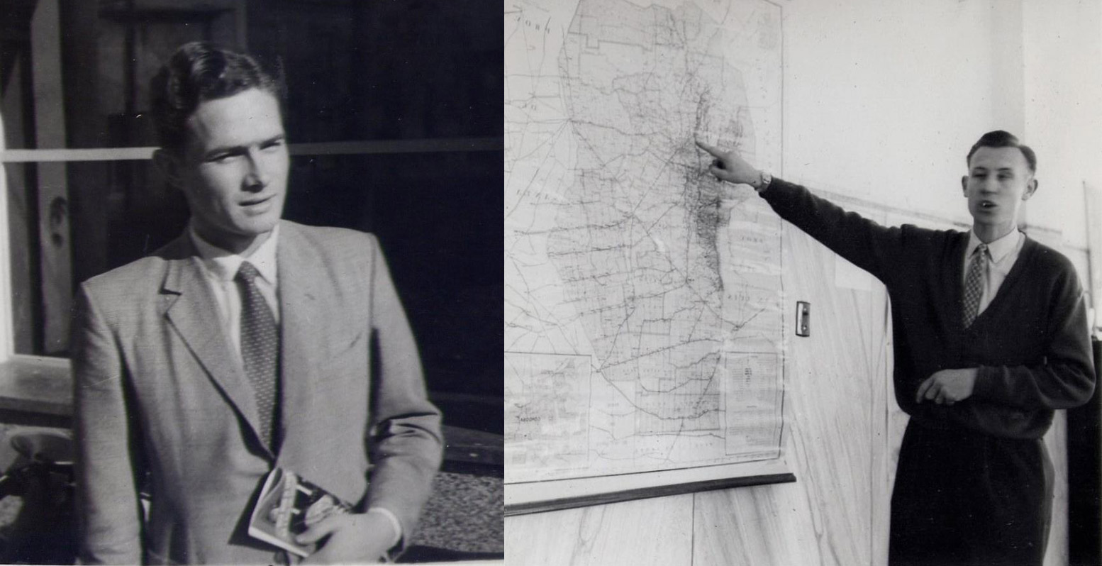 Un joven Luis Palau (i), en una foto tomada en Córdoba, Argentina (1961), a los 27 años de edad. A la derecha, Keith Bentson, con uno de sus «mapas de oración» / Foto: Connie Bentson / +Ampliar