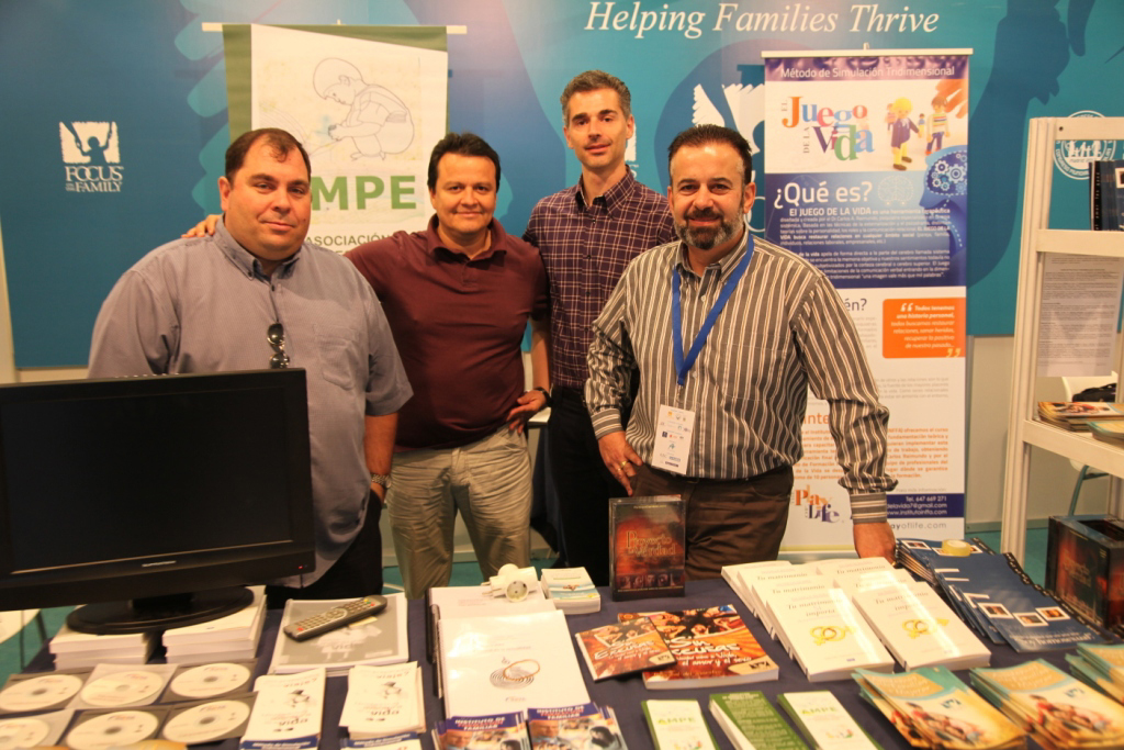 Entrevistamos a Porras en el stand de «Enfoque a la Familia», uno de los más destacados y mejor ubicados, donde se encuentra acompañado de algunos evangélicos españoles que trabajan en la organización; entre ellos, Jonatán Pozo y Juan Varela («De Familia a Familia», INFFA); Elísabet Rodríguez, presidenta de la Asociación de Madres y Padres Evangélicos (AMPE), entidad de reciente constitución; y Alfonso Cherene, director nacional de JCUM (Juventud con una Misión).