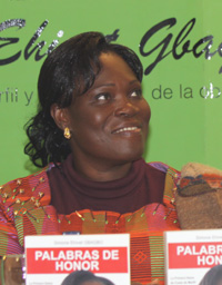 (MADRID, 29/10/2009) El pasado día 27 tuvo lugar la presentación del libro "Palabras de Honor", de la primera dama de Costa de Marfil, Simone Ehivet Gbagbo, quien acudió al acto en persona, acompañada por autoridades del Gobierno y del cuerpo diplomático de su país, entre otras distinguidas personalidades. El acto de presentación fue celebrado en los Salones Altabe, de la Asociación Remar, entidad que oficiaba de anfitriona de esta visita de la Sra. Gbagbo a España, calificada de carácter privado, es decir, no oficial.