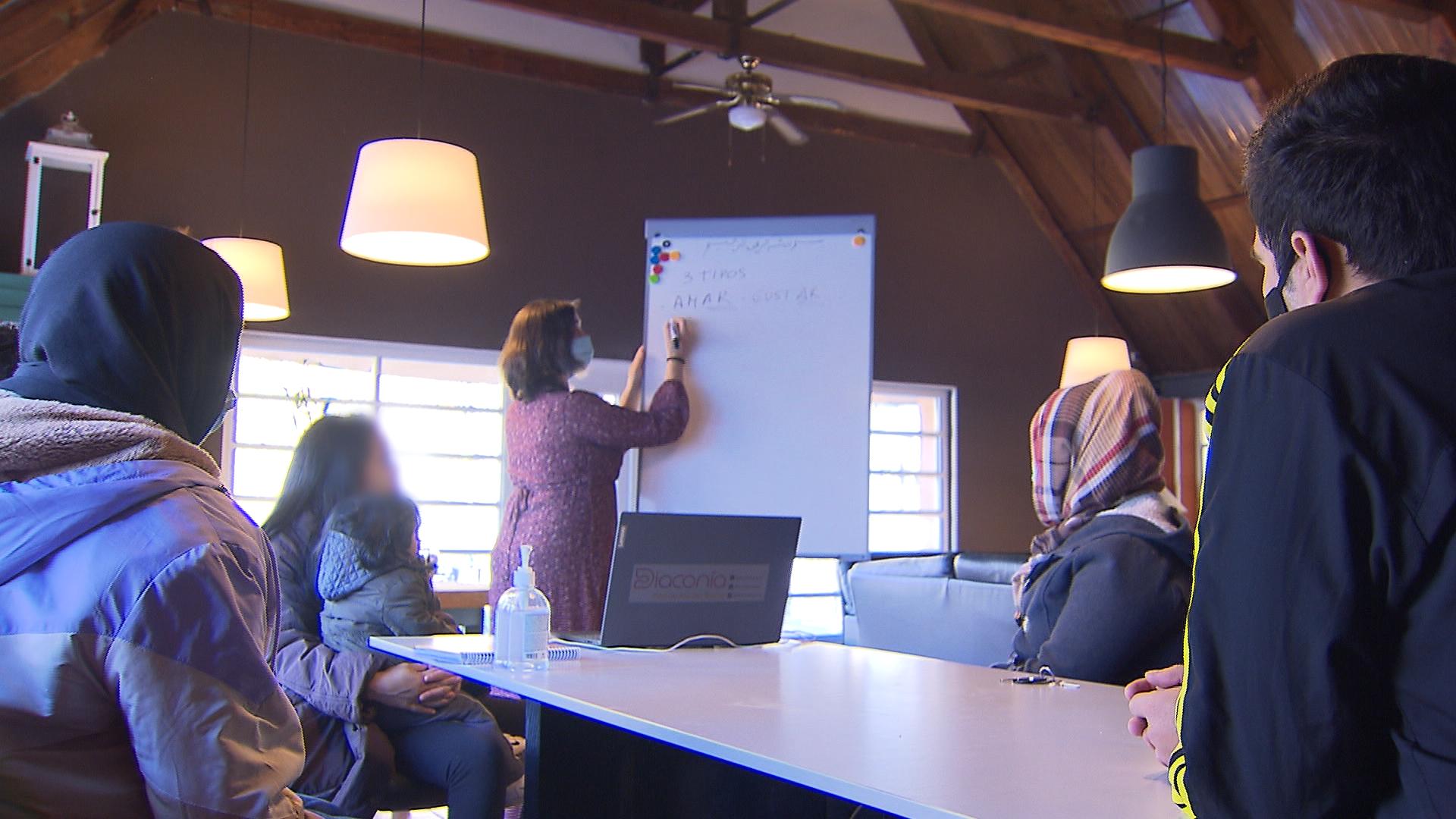 “Nos gustaría aprender la lengua española lo antes posible”, dice Salmai en inglés, “y así poder valernos por nosotros mismos”.