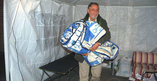 Julio Setién, de 64 años de edad, inició la huelga de hambre y la acampada en plena calle -junto a la Plaza de España- la mañana del pasado jueves 4 de octubre, como medida de presión y protesta para intentar desbloquear una negociación que había entrado en vía muerta y que impedía a casi 200 familias acceder a sus inmuebles.