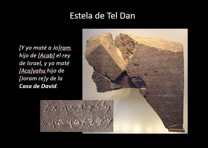 Pero lo más espectacular es que menciona la “casa de David” y esta es la primera y más antigua mención del rey David fuera de la Biblia. Este hallazgo debilita significativamente la postura minimalista de que el Rey David nunca existió.