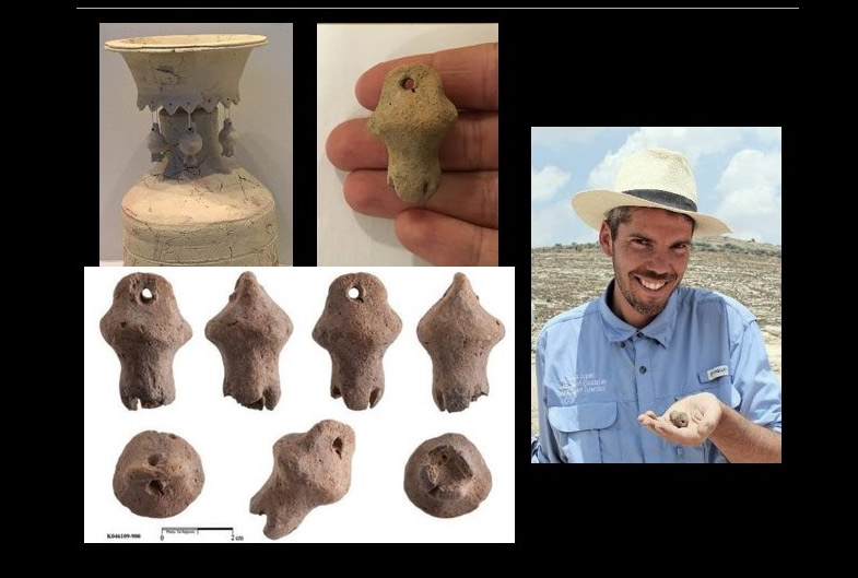 Más tarde determinaron que esta figura probablemente formó parte de un incensario parecido al de Tel Hatzeva, y que databa de la Edad de Hierro (probablemente siglo IX-X a.C.), aunque alguien sugirió que podría haber sido parte del ropaje del sumo sacerdote, según Éxodo 28:33.