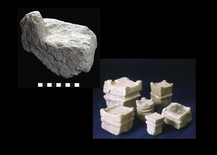 La granada hallada en Silo y del incensario procedente de Tel Hatzeva. (Fotografía: Tim López)