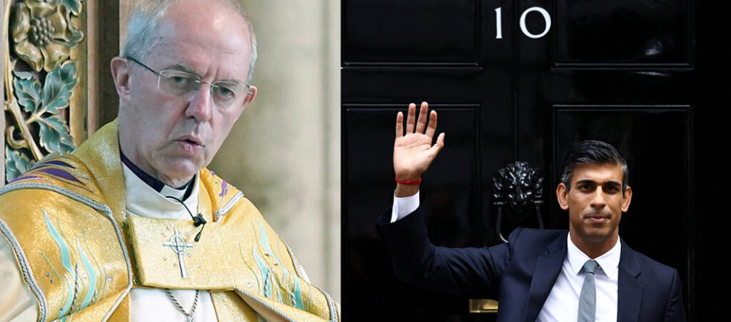 El arzobispo Justin Welby dijo que estaba orando por Sunak y por la salud de las relaciones entre las distintas fuerzas políticas.