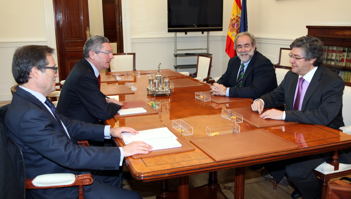 (Redacción, 19/02/2013) El Ministro de Justicia, Alberto Ruiz-Gallardón, recibió esta mañana a José Luis Andavert y a Mariano Blázquez, Presidente y Secretario Ejecutivo de la Federación de Entidades Religiosas Evangélicas de España (FEREDE), respectivamente. El Ministro estuvo acompañado del Director General de Cooperación Jurídica Internacional y Relaciones con las Confesiones, Ángel Llorente.