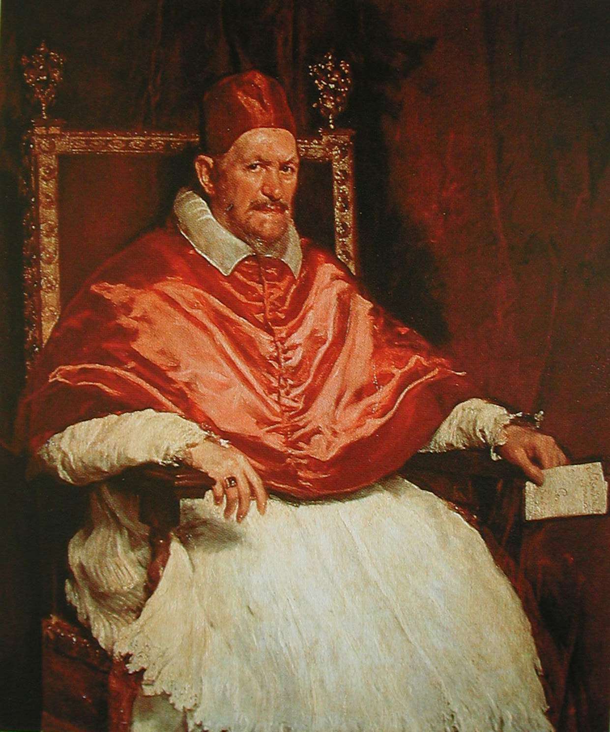 Pero ¿quién era en realidad Inocencio X, de nombre secular Giovanni Battista Pamphili? Aunque resulte un dato circunstancial y accesorio, digamos que era descendiente de los Borgia, concretamente del papa Alejandro VI. Fue papa de la Iglesia católica desde el 15 de septiembre de 1644 al 7 de enero de 1655, y ejercía como tal cuando Velázquez disfrutó de un estimulante retiro en Roma, fuera del rigor artístico al que estaba sometido en la corte española como pintor de la familia de Felipe IV. Contaba ya 70 años cuando fue elegido papa. En su curriculum figura haber sido consistorial y auditor del Tribunal de la Rota. Su elección como papa no estuvo exenta de polémica a causa de los enfrentamientos entre las facciones de cardenales españoles y franceses.