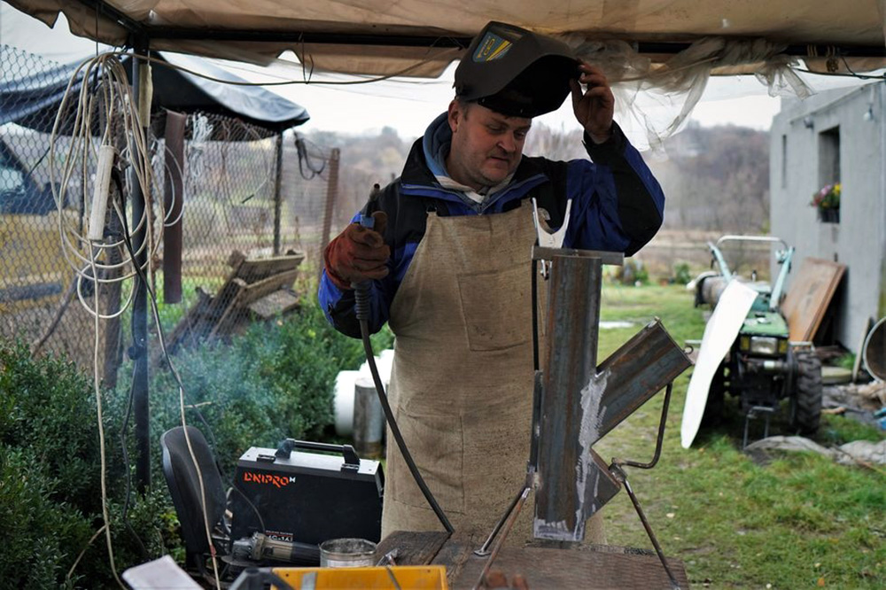 Desde que comenzó en septiembre, Ihor ha fabricado 35 cocinas soldando pacientemente cada una de las piezas de metal que previamente ha cortado de planchas. Ha echado bien las cuentas. A él cada una le sale por unas 800 grivnas (unos 21 euros), cuando en un comercio asegura que le hubieran costado el triple. “Es mejor redondear los cantos para que no arañen ni se enganchen en la ropa”, dice Ihor mientras acaricia la que está terminando. De fondo ladran los perros y corretean las gallinas junto a la huerta.