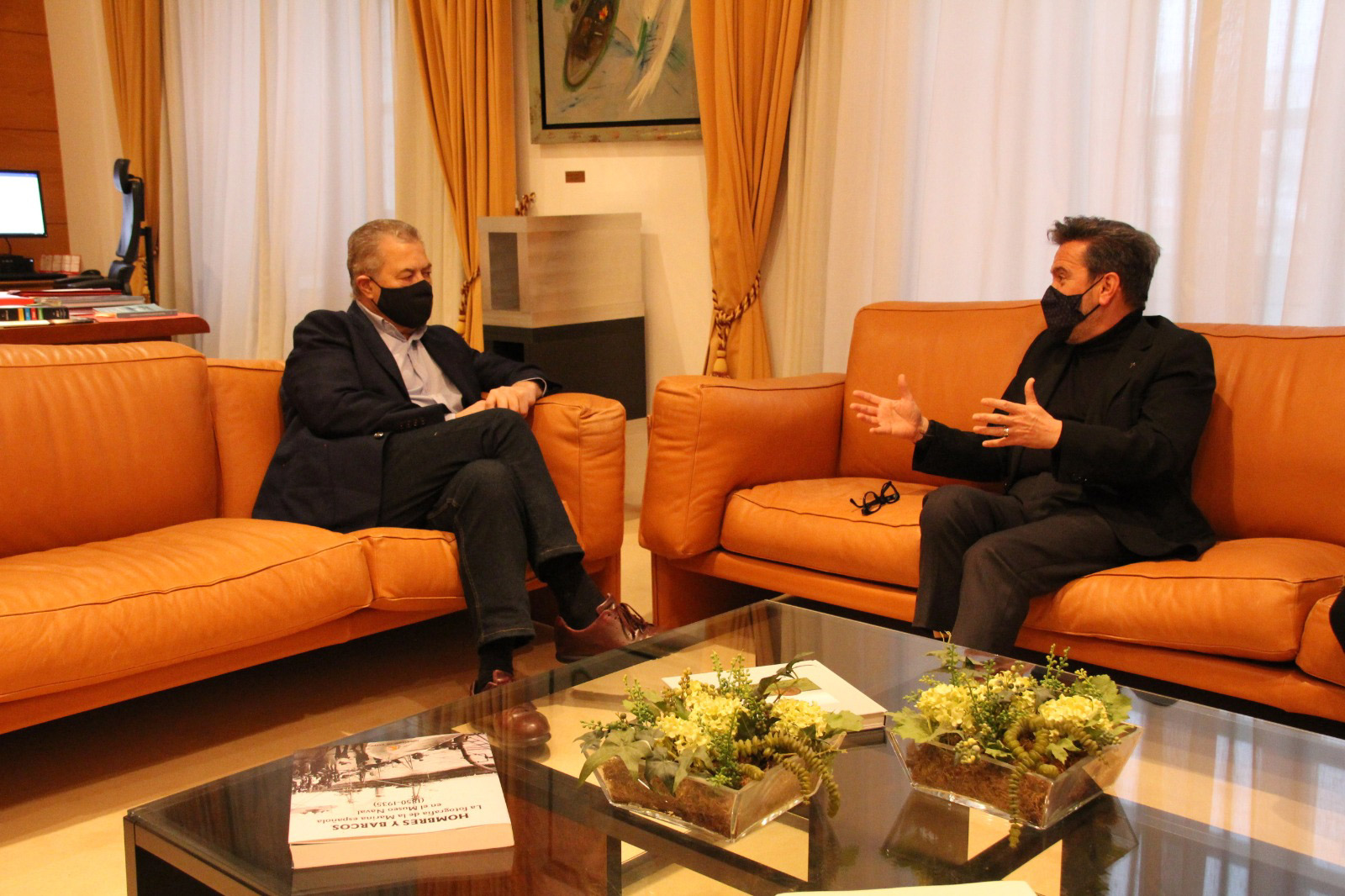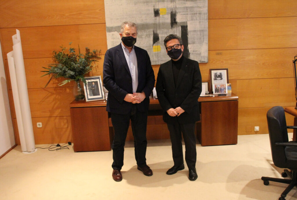 El presidente del Parlamento cántabro, Joaquín Gómez (i) y el pastor Julio García Celorio (d) tras la reunión de ayer / Foto: Parlamento de Cantabria