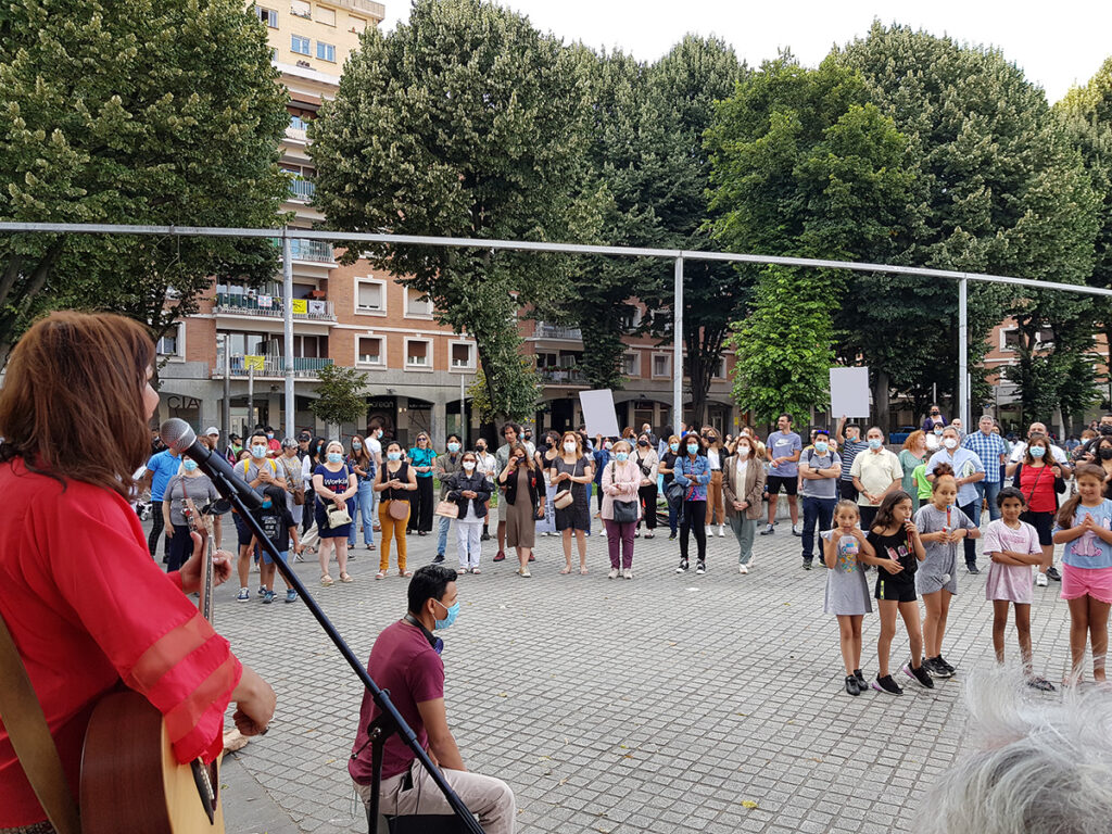 La cantautora Maritza Barreñada (de espaldas) animó las actividades de testimonio con sus canciones