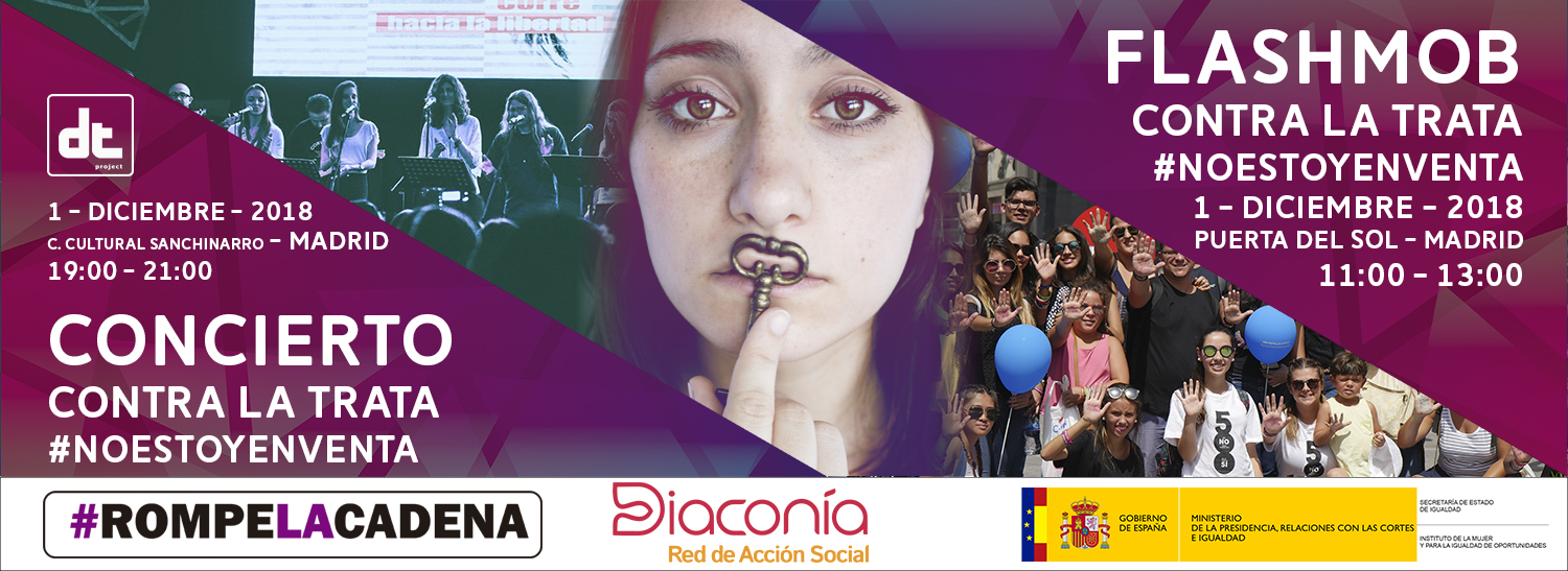 (PODCAST, 21/11/2018) El próximo sábado 1 de diciembre la Red de Acción Social Diaconía, a través del movimiento #ROMPELACADENA, repetirá sus eventos anuales de Flashmob y concierto con Dtproject realizados para sensibilizar sobre la realidad de la Trata de Personas víctimas de explotación sexual, especialmente de mujeres y niños, bajo el lema de #NOESTOYENVENTA