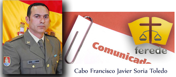 (FEREDE, 29/01/2015) Con motivo de la muerte del “casco azul” español, el cabo Francisco Javier Soria Toledo, quien participaba en una misión de paz de la ONU en el sur del Líbano, al ser alcanzado por una granada israelí el pasado miércoles, la FEREDE ha hecho público un comunicado que, además, ha enviado al Jefe del Estado Mayor de Defensa, almirante general Fernando García Sánchez.