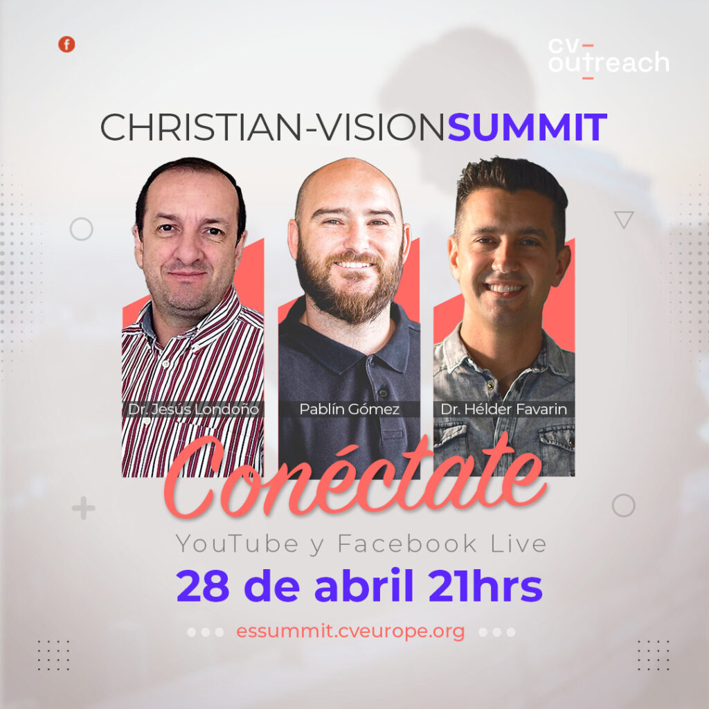Bajo el lema «Entendiendo los tiempos: Amar en tiempos revueltos», el Dr. Jesús Londoño y el Dr. Helder Favarín, compartirán algunas ideas para la Iglesia en España en estos tiempos. Será el próximo 28 de abril a las 21:00 hs por Youtube y Facebook LIVE de Christian Vision España.