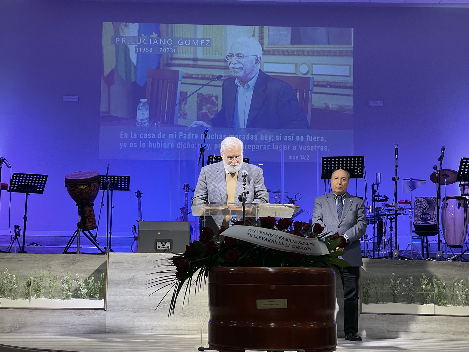 Presidido por el pastor Ebenezer Troitiño, después de orar y cantar “Jesucristo es el motivo de mi canción”, canción pedida expresamente por el propio Luciano, se dio paso al pastor Manuel Arniz, quien predicó una palabra de esperanza a los asistentes.
