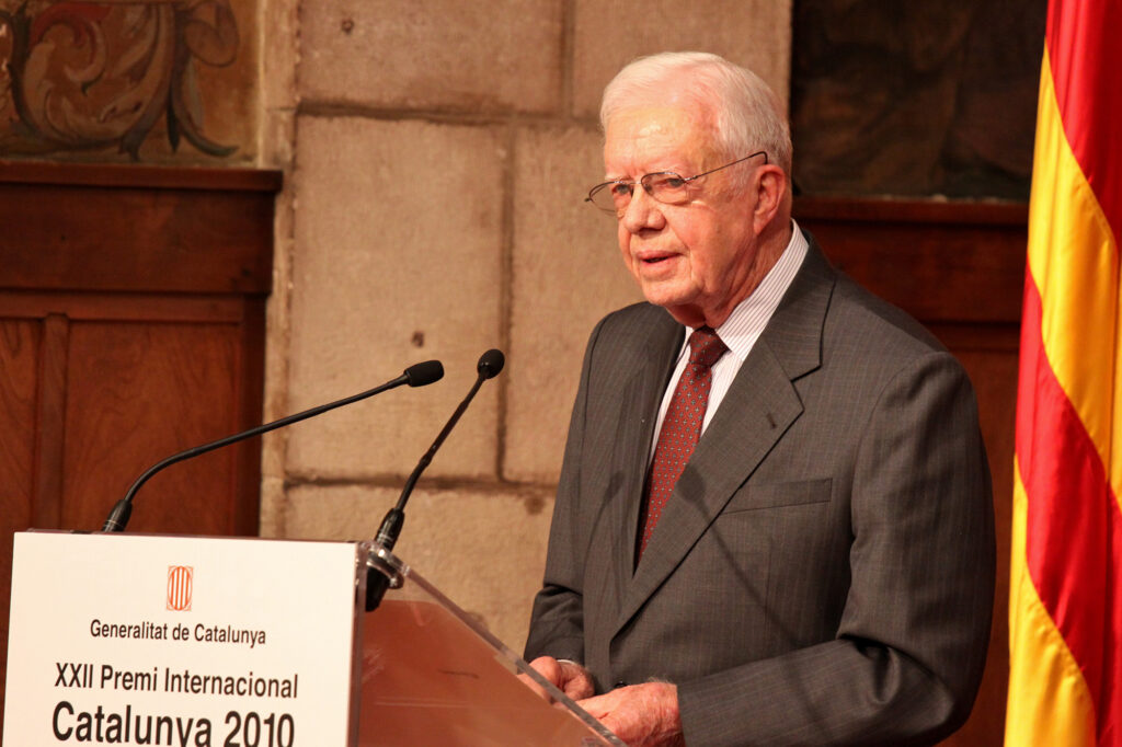 El presidente Jimmy Carter ayer, en su discurso al recibir el 22º Premi Internacional Catalunya 2010