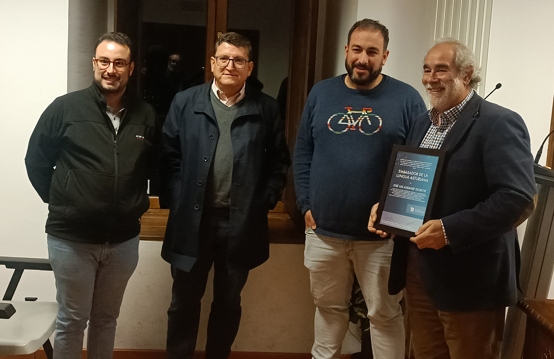 (ASTURIAS, 22/11/2022) José Luis Andavert, director general emérito de la Sociedad Bíblica de España, que se encargó de la edición de la Biblia en asturiano, fue nombrado Embajador de la Lengua Asturiana, reconocimiento otorgado por Iniciativa por el Asturiano, organización que trabaja por la normalización de la lengua asturiana y los derechos lingüísticos de sus hablantes, en un acto celebrado el pasado jueves 17.