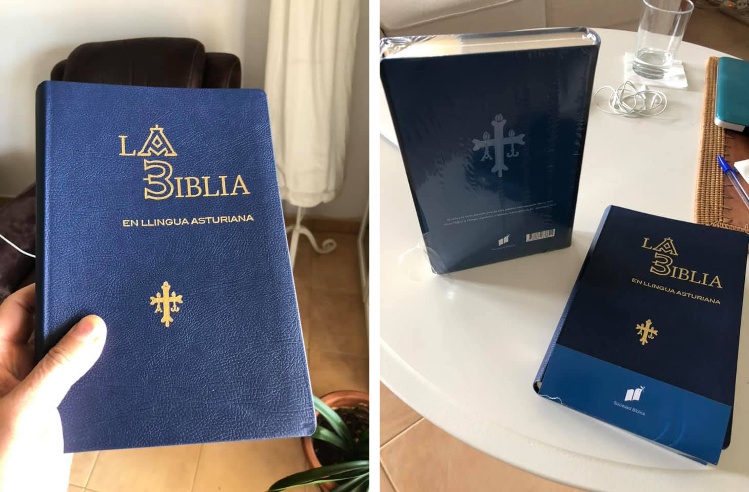 “Han sido casi treinta años de trabajo, con algunas interrupciones, con no poco esfuerzo y dedicación. ¡Por fin la Biblia en Lengua Asturiana! Y con ella nuestro recuerdo y homenaje a dos de sus principales impulsores: Federico Fierro y Ruben Fernandez quienes seguro que desde el cielo celebran este acontecimiento. ¡A Dios sea la gloria!”