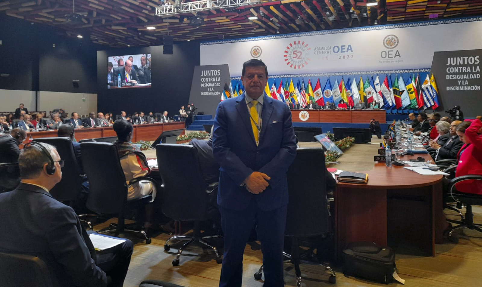 El pastor y vicepresidente primero de la AEL, Eduardo Gómez, en la 52ª Asamblea General de la OEA