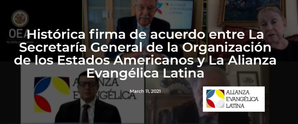 (Redacción, 11/03/2021) En el día de hoy se ha formalizado la firma de un histórico acuerdo de cooperación entre la Alianza Evangélica Latina (AEL) y la Organización de Estados Americanos (OEA).