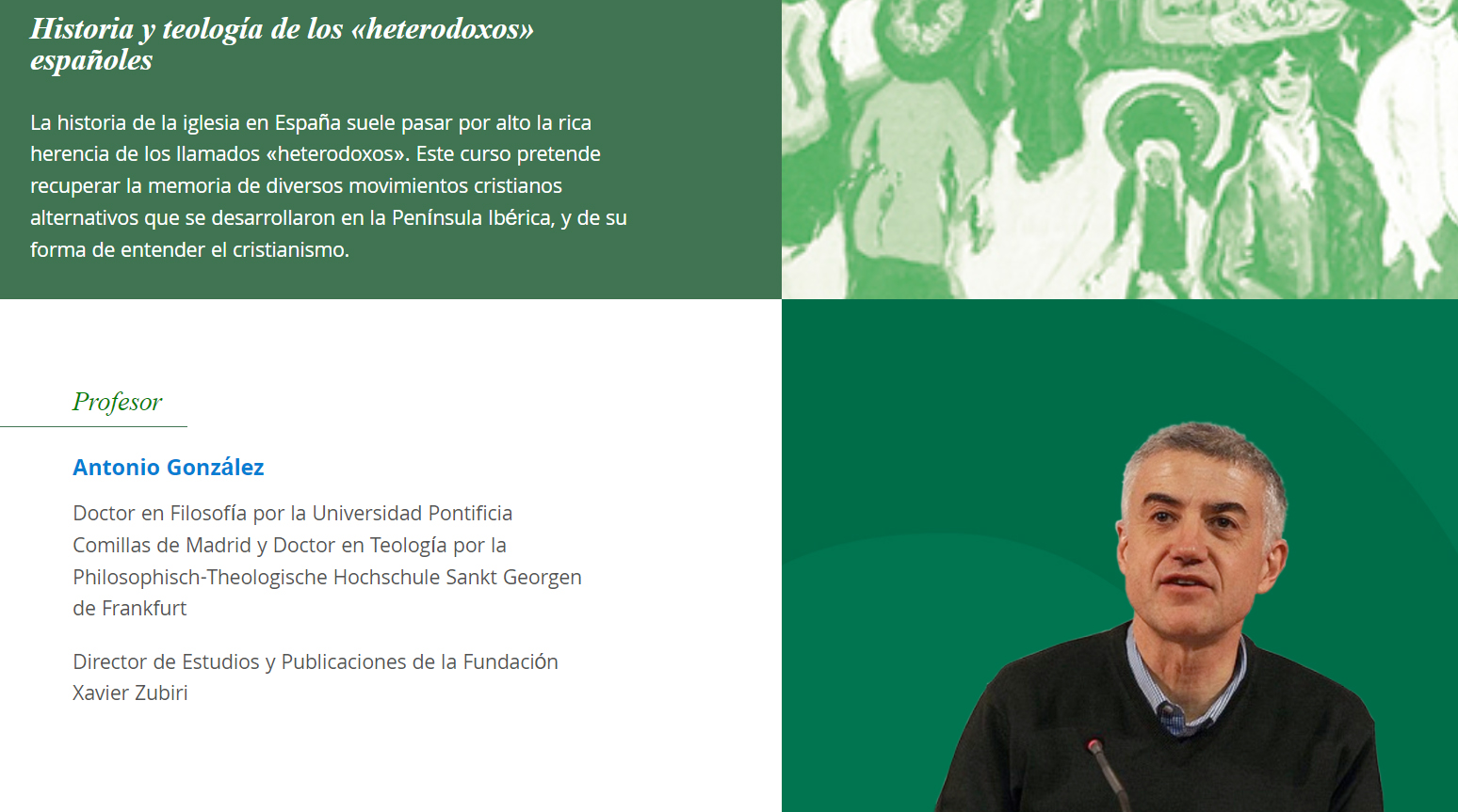Doctor en Filosofía por la Universidad Pontificia Comillas de Madrid, doctor en Teología por la Philosophisch-Theologische Hochschule Sankt Georgen de Frankfurt, González es el responsable de un nuevo curso de la Fundación XZ, titulado Historia y teología de los “heterodoxos” españoles.