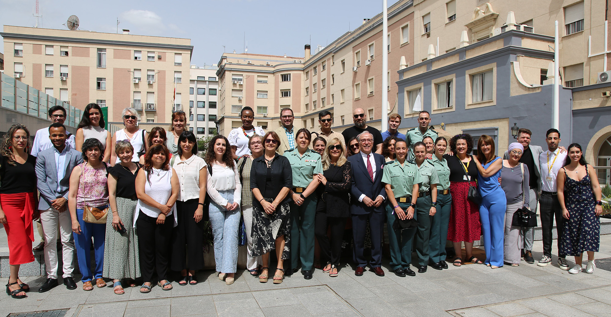 Eva Márquez (2ª por la izq.) y a su izquierda Joan David Grimà, de Diaconía España, junto a responsables de la Guardia Civil, esta mañana