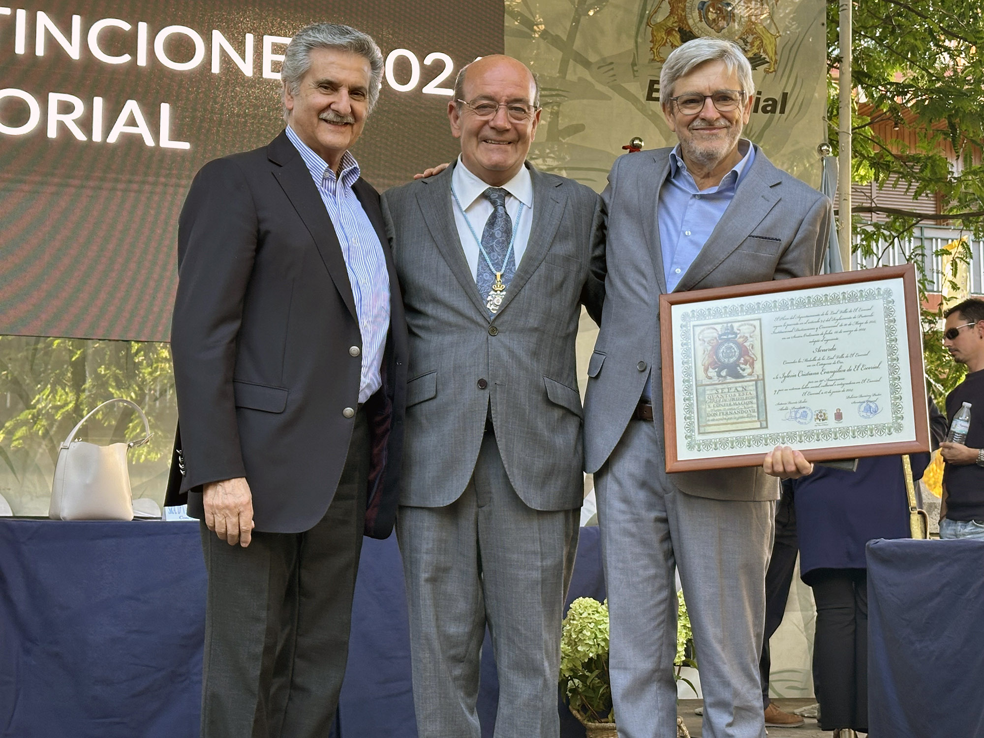 De izq. a der.: El evangelista Carlos Gómez; el alcalde de El Escorial, Antonio Vicente Rubio; y el pastor de la iglesia distinguida, Felipe Redondo