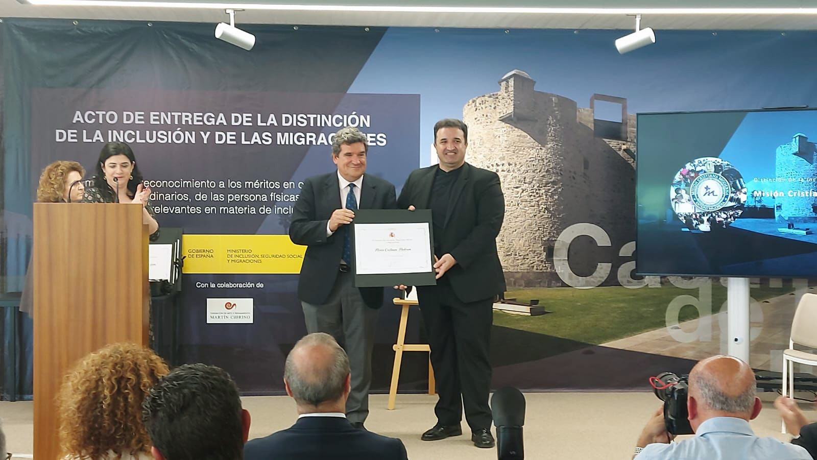 El titular del Ministerio de Inclusión, Seguridad Social y Migraciones, ministro José Luis Escrivá, ha entregado en un acto celebrado este mediodía en el Castillo de la Luz (Las Palmas de Gran Canaria), diplomas y una lámina artística al Ayuntamiento de Las Palmas de Gran Canaria, Salvamento Marítimo, Inditex, las asociaciones Oportunidades de Vida, de Voluntarios de Protección Civil del Valle de El Golfo (El Hierro) y de bomberos Proemaid, así como a la iglesia evangélica, Misión Cristiana Moderna (MCM).