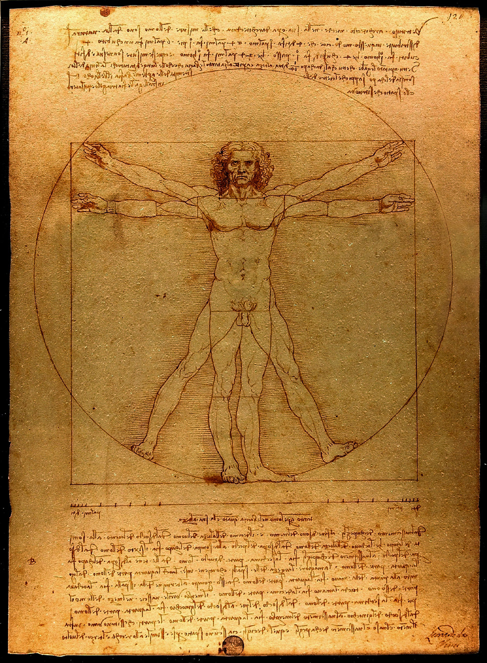 20150123-4aMe parece muy interesante la ilustración que podemos usar de la misma obra del gran polímata Leonardo Da Vinci (1452-1519). Su dibujo del Hombre Vitruviano era una ilustración para explicar algunos aspectos anatómicos. En éste aparece el hombre en forma de cruz, e inscrito en una circunferencia que a su vez está inscrita en un cuadrado, y que nos puede ilustrar también las proporciones del pensamiento renacentista: la razón frente a todo un complejo y oscurantista sistema de fe que anulaba el raciocinio, y que pertenecía al Medievo ­–una época que se quería abolir de una vez por todas, por todos aquellos que impulsaban la Reforma Protestante, y el Renacimiento, aunque en ambos movimientos, existirían bastantes antagonistas y detractores.