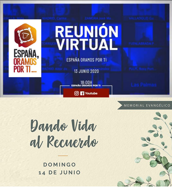 Por otra parte, con motivo de la crisis por la pandemia del Covid-19, que ha causado más de 30.000 fallecidos -entre ellos algunos queridos fieles y pastores evangélicos- a los cuales, dadas las circunstancias del estado de alarma ha sido imposible despedir debidamente, una iniciativa promovida por la Alianza Evangélica, AMEMOS; España Oramos por Tí; FEREDE, Fraternidad Pentecostal y Carismática; PUEDES; además de las principales denominaciones evangélicas, ha impulsado la celebración del Memorial Evangélico, “Dando vida al recuerdo” para este próximo domingo 14 de junio.