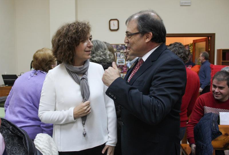 El pastor Jose Moreno conversa con la alcaldesa de Alcázar, Rosa Melchor