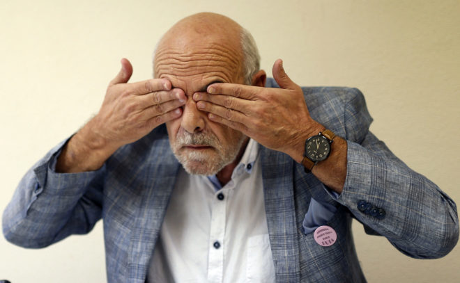 Richard Poulin se tapa los ojos durante la entrevista. JAVIER BARBANCHO