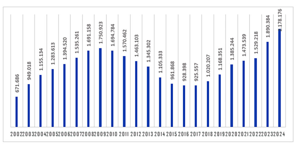 EVOLUCIÓN INMIGRACIÓN LATINA EN ESPAÑA 2002-2024[vi]