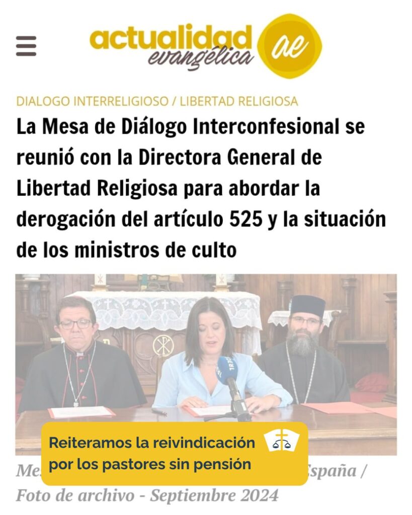 FEREDE, con el respaldo del resto de las confesiones representadas en la Mesa, reiteró su petición al Ministerio de la Presidencia y al Ministerio de Inclusión, Seguridad Social y Migraciones para la aprobación del Real Decreto que permita reparar la situación de los pastores protestantes a quienes se les negó el derecho a cotizar a la Seguridad Social hasta 1999.