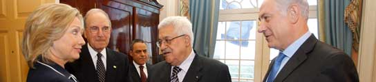 "La decisión de sentarse en esta mesa no fue fácil. Entendemos los recelos y el escepticismo… gracias por su valor y su compromiso", declaró horas antes, en una ceremonia oficial, la secretaria de Estado de EE UU, Hillary Clinton, acompañada por Netanyahu, Abás y Mitchell. Tras su encuentro con Clinton, Netanyahu y Abás mantuvieron su primera reunión cara a cara, que duró unas dos horas. Para garantizar el éxito de las negociaciones, las reuniones tendrán carácter privado, por lo que apenas han trascendido detalles de los temas puestos sobre la mesa. No obstante, se han expresado coincidencias en la condenación de la matanza de víctimas inocentes, en la necesidad de crear dos Estados, y de alcanzar un acuerdo marco como primer objetivo. Los desafíos, se sabe, son enormes. Uno de los principales obstáculos que se perfila es Hamás, que ha aumentado las acciones violentas en Cisjordania y prepara nuevos atentados contra objetivos israelíes. Por otra parte, el diario EL MUNDO publica hoy unas sorprendentes declaraciones del Ministro de Defensa israelí, Ehud Barak, en las que anuncia la futura división de Jerusalén, un tema que contará, por descontado, con una fuerte oposición interna en el país.