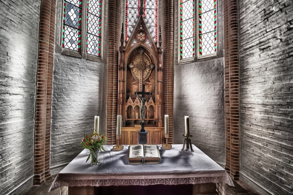 Un altar en términos generales es un lugar donde se hacen sacrificios y, hablando de la Biblia, estos se encuentran en toda la teología del Antiguo Testamento, que señalaban especialmente al Mesías que vendría para redimirnos. Es por ello que en el Nuevo Testamento los seguidores de Cristo -el Mesías que ya vino- no participaron de tales sacrificios con animales u holocaustos. En las iglesias católicas, ortodoxas o coptas, siguen teniendo altares donde se realizan sacrificios. Estos sacrificios tienen que ver con la eucaristía[1], que en una mesa que constituye el altar, se realiza el rito que comprende la transustanciación del pan y el vino en el cuerpo y la sangre de Jesús, entrañando esto un nuevo sacrificio en cada misa, aunque estos sean incruentos o sin dolor[2].