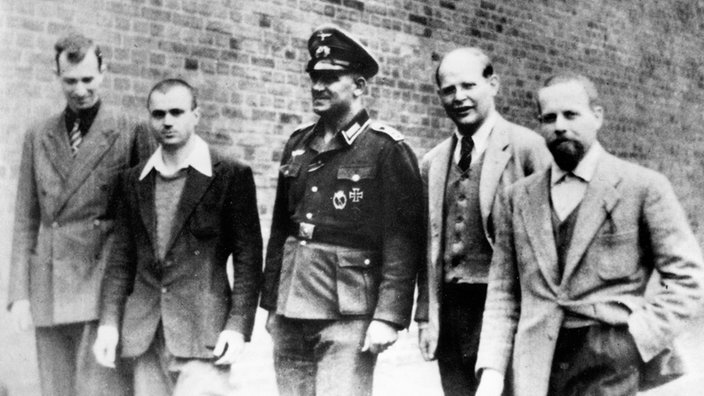 Dietrich Bonhoeffer, segundo por la derecha, en la prisión de Tegel (Berlín, Alemania) a la espera del juicio en 1944