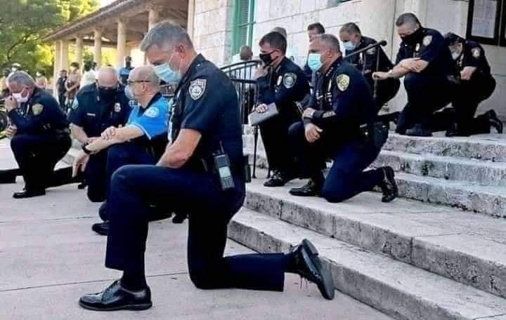 Policías estadounidenses se arrodillan en solidaridad con los manifestantes