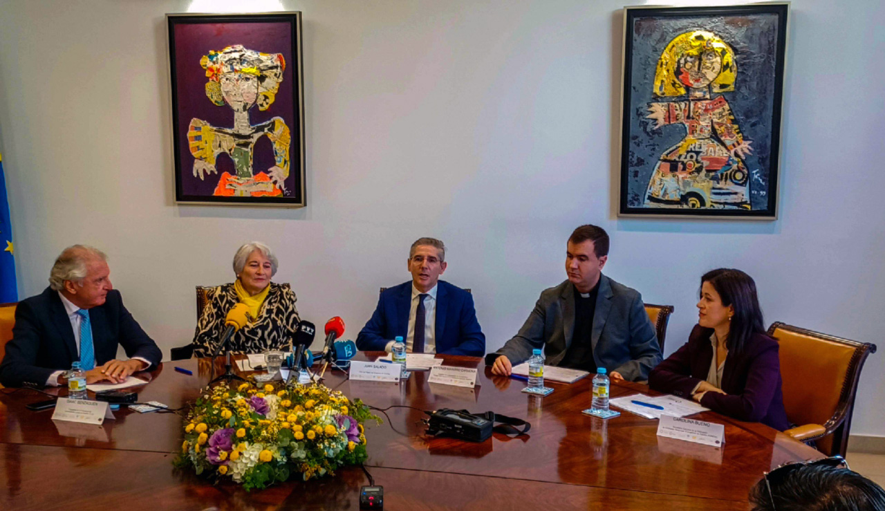 Comparecieron ante los medios presentes, Juan Salado, CEO del Palacio de Congresos de Córdoba; y los representantes Antonio Navarro, delegado diocesano de Ecumenismo y para el Diálogo Interreligioso de la Diócesis de Córdoba; Isaac Benzaquén, presidente de la Federación de Comunidades Judías de España; Carolina Bueno, secretaria ejecutiva de la Federación de Entidades Religiosas Evangélicas de España (FEREDE); e Isabel Romero, presidenta de Junta Islámica.