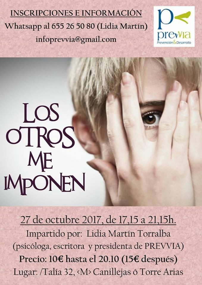 (PODCAST, 27/09/2017) ¿Hasta qué punto nos condiciona la opinión de los demás? ¿Qué factores nos hacen vulnerables ante las imposiciones de otros? ¿Cómo podemos vencer nuestra timidez y defender nuestras posiciones y criterios? A estas y otras preguntas se intentará dar respuesta en el taller titulado “Los otros me imponen”, organizado por la asociación PREVIA (Prevención&Desarrollo), que tendrá lugar este viernes 27 de octubre de 17:00 a 21:00 hs, en la sede de la Iglesia Evangélica “Cristo Vive”, c/ Talía 32, Metro Canillejas.