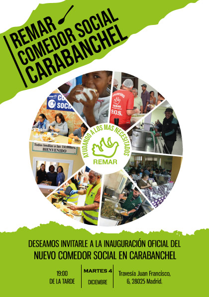El próximo 4 de diciembre tendrá lugar el acto inaugural de este comedor social, a las 19:00 hs, en su domicilio de la Travesía Juan Francisco, 6 (28025) Madrid. El acto comenzará con la proyección de un vídeo e incluirá los saludos oficiales de los representantes de la Fundación Obra Social La Caixa (Madrid); del Ayuntamiento de Madrid; de la Comunidad de Madrid; y de la ONG REMAR.
