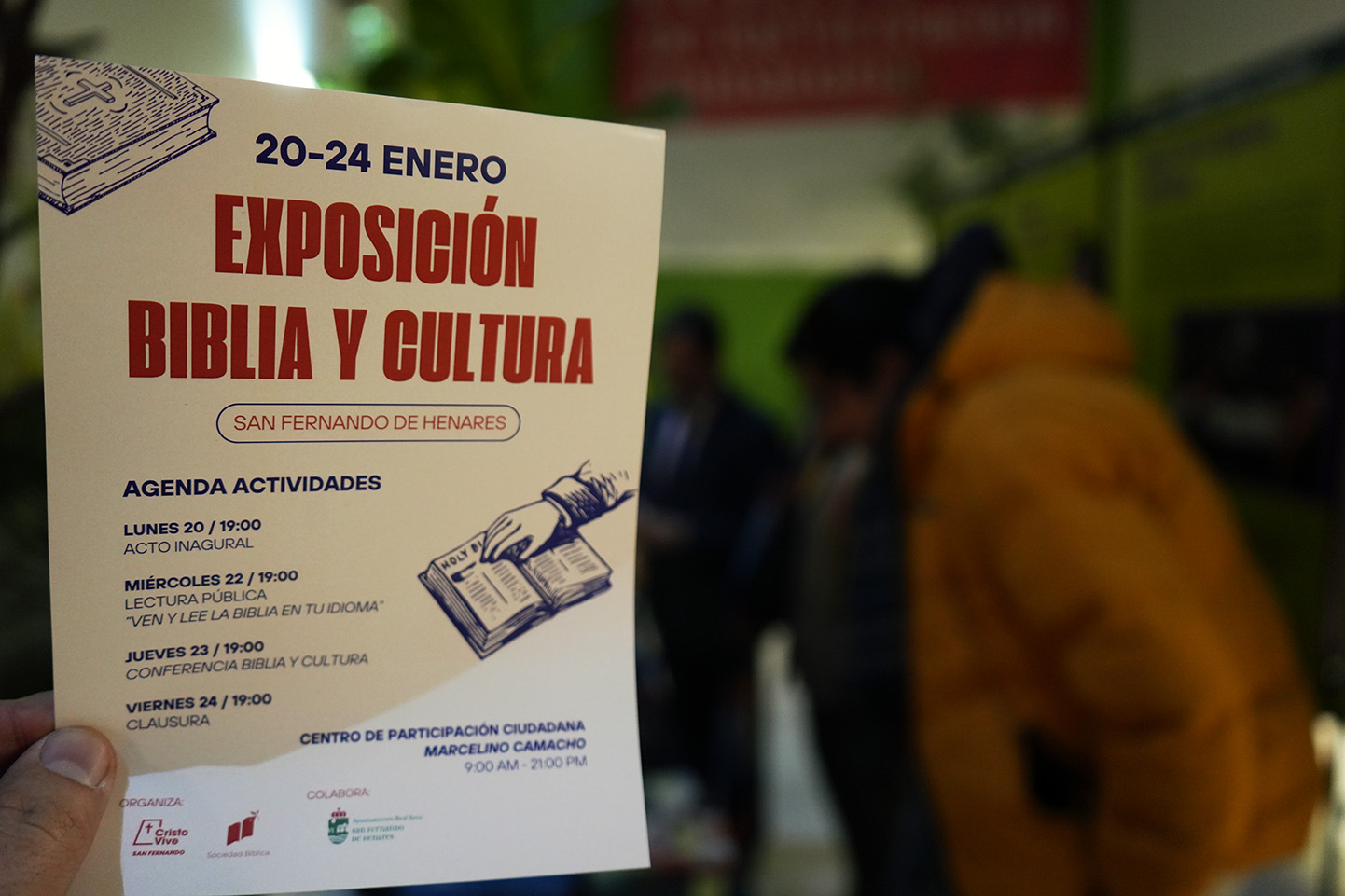 (SAN FERNANDO DE HENARES, 21/01/2025) La Iglesia Evangélica Cristo Vive, en colaboración con la Sociedad Bíblica España, inauguró este lunes la exposición “Biblia y Cultura” en el Centro de Participación Ciudadana Marcelino Camacho, un espacio cedido generosamente por el Ayuntamiento de San Fernando de Henares.