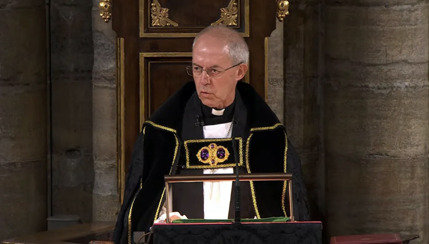 El arzobispo de Canterbury, Justin Welby, este lunes en la Abadía de Westminster, durante su sermón / Captura de pantalla