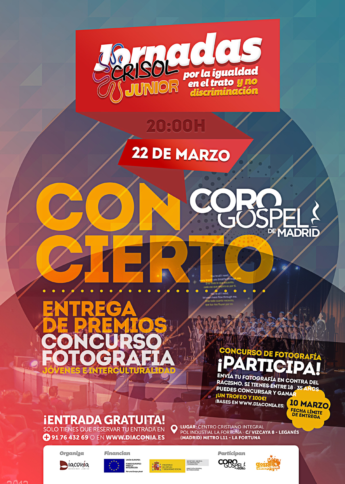 Dentro del citado programa, tenemos previstas una serie de actividades, entre las que se encuentran la Jornada Crisol Junior que se celebrará el día 22 de marzo del presente 2014 en Madrid. El lugar de celebración será el Centro Cristiano Integral situado en el Polígono Industrial la Fortuna en la Calle Vizcaya 8 de Leganés, cerca del Metro L11 La Fortuna.